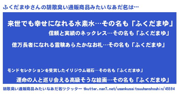 | ヘコむあだ名 | 『ふくもー』『ふくだまゆ(苦笑)』 |