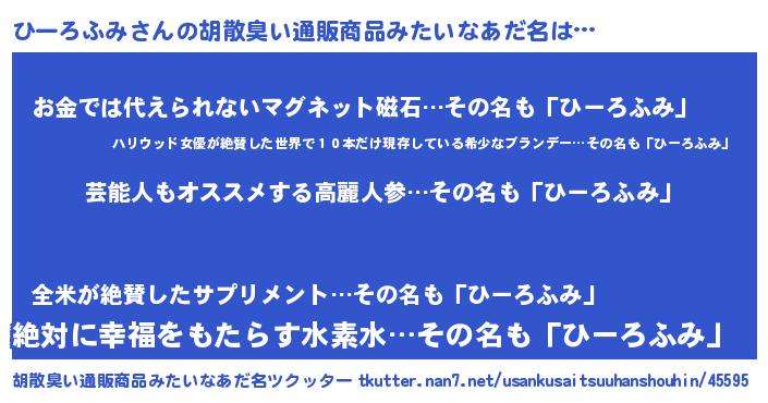 | 意味不明あだ名 | 『自称ひーろふみ』『永久保存ひーろふみ』 |