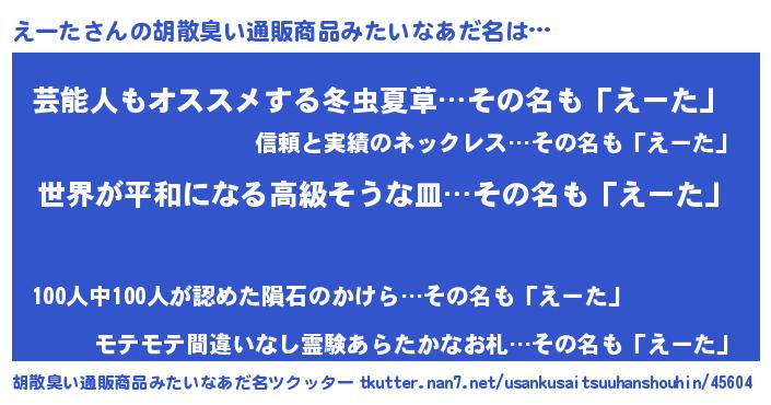 | 意味不明あだ名 | 『えーたフォーエバー』『自称えーた』 |