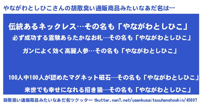 | 意味不明あだ名 | 『自称やながわとしひこ』 |