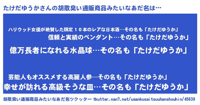 | 恥ずかしいあだ名 | 『プリティーたけだゆうか』『たけっちょ』 |