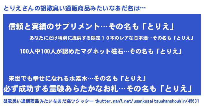 | 料理風あだ名 | 『とりえごはん』『とりえの豆乳スープ』 |