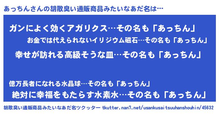 | ファンタジー風あだ名 | 『エターナルアッチンー』『ゼアットゥ』 |