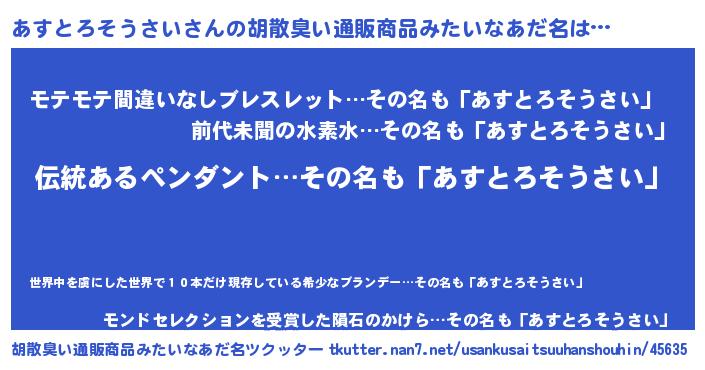 | 意味不明あだ名 | 『とにかく怪しいあすとろそうさい』 |