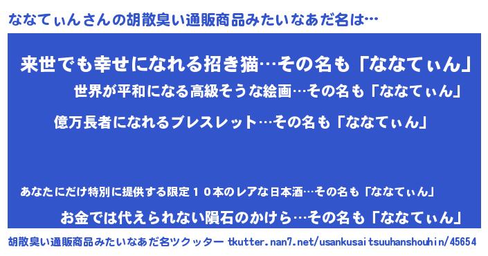 | ヘコむあだ名 | 『ななにー』『ななてぃん(爆)』 |