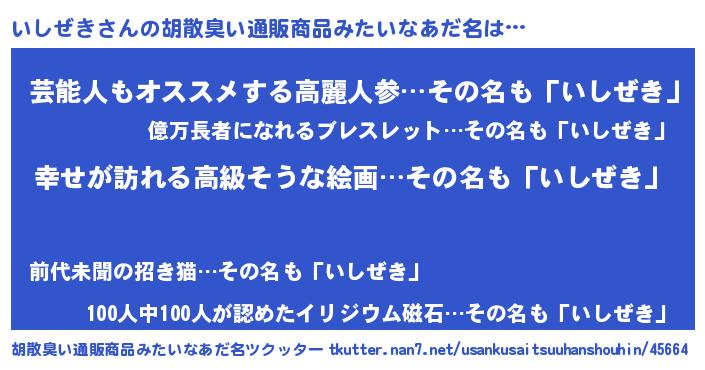 | 恥ずかしいあだ名 | 『いしっちょ』『イシゼキデラックス』 |
