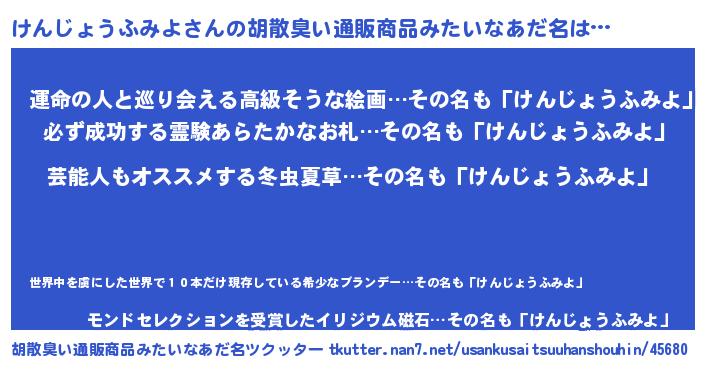 | 意味不明あだ名 | 『自称けんじょうふみよ』 |