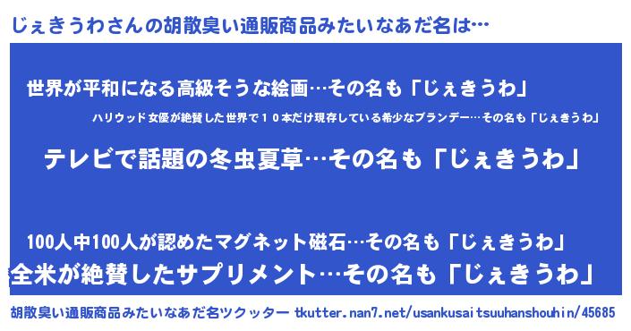 | 意味不明あだ名 | 『自称じぇきうわ』 |