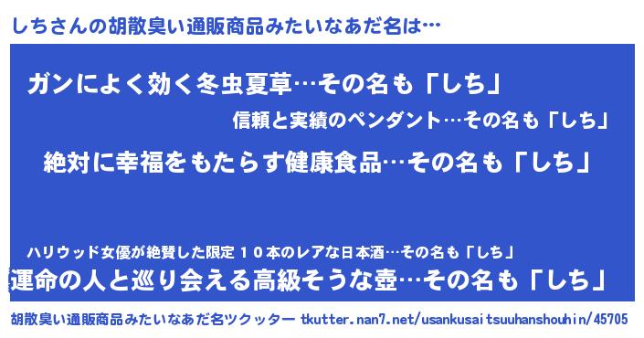 | 意味不明あだ名 | 『永久保存しち』『自称しち』 |