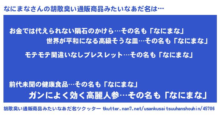 | 欧米人風あだ名 | 『マイケルなにまな』『ダニエルなにまな』 |