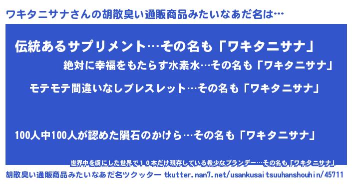 | 肩書あだ名 | 『ワキタニサナ社長』『ワキタニサナ団長』 |