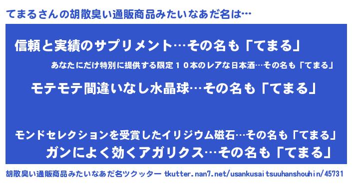 | ヘコむあだ名 | 『てまふぇ~』『てま太郎』『牛乳』 |