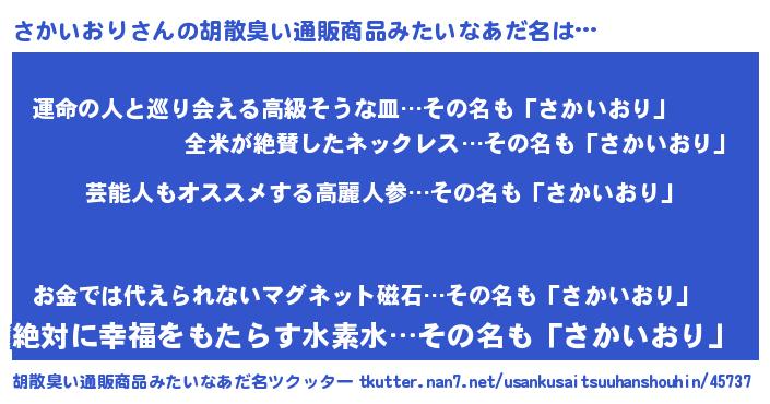 | ヘコむあだ名 | 『酢こんぶ』『さかいおり(苦笑)』 |