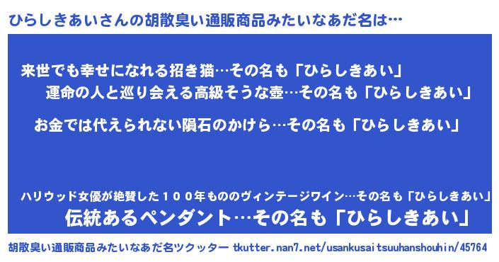| ヘコむあだ名 | 『ひらしきあい(遠い目)』『ひらを』 |