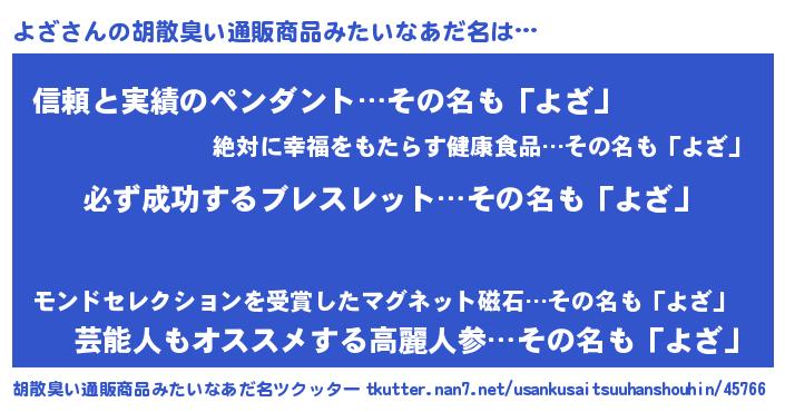 | ヘコむあだ名 | 『よざふぇ~』『よざっ子』『牛乳』 |