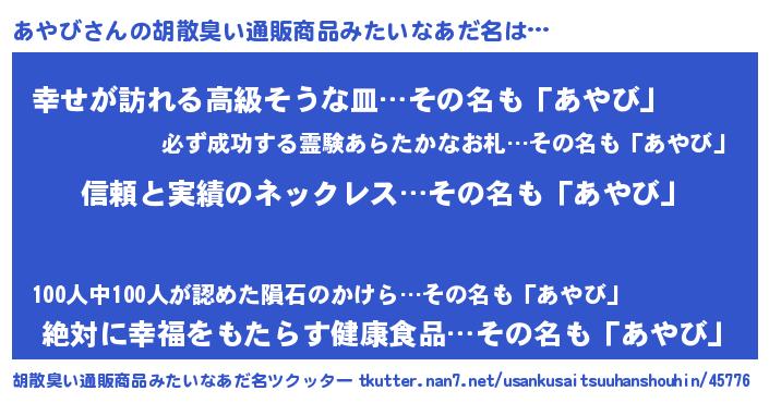 | ヘコむあだ名 | 『あやっ子』『つくし』『あやび(笑)』 |