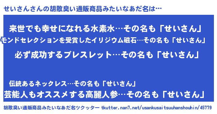 | ヘコむあだ名 | 『せいにー』『せいさん(遠い目)』 |