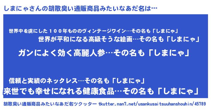 | 意味不明あだ名 | 『自称しまにゃ』『永久保存しまにゃ』 |