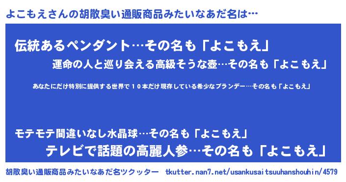 | 意味不明あだ名 | 『住所不定無職よこもえ(95歳)』 |