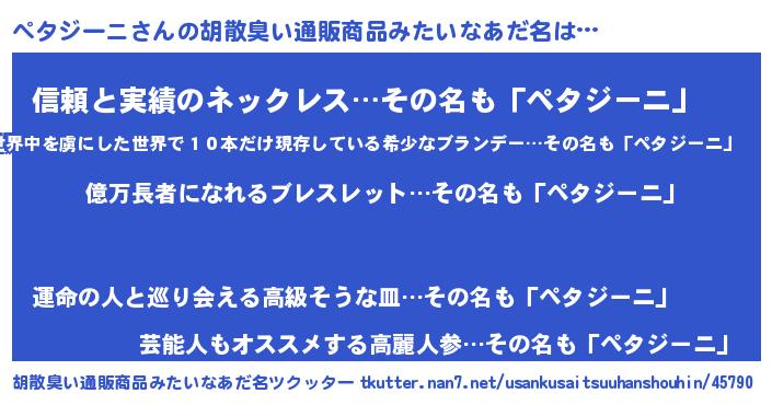 | 意味不明あだ名 | 『ペロリンペタジーニ』『自称ペタジーニ』 |