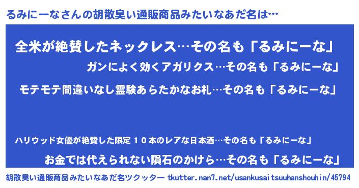 | 意味不明あだ名 | 『ペロリンるみにーな』『自称るみにーな』 |