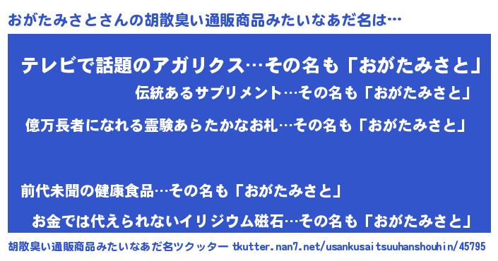 | 意味不明あだ名 | 『ヨモギ科おがたみさと属』 |