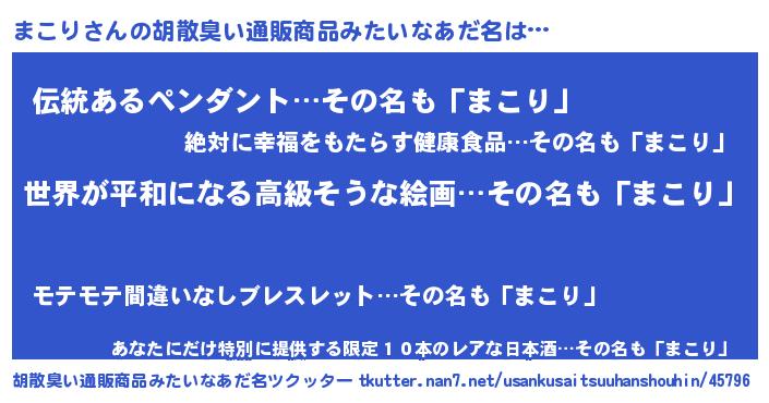 | ヘコむあだ名 | 『豆乳』『まこぷりん』『まこにゅー』 |
