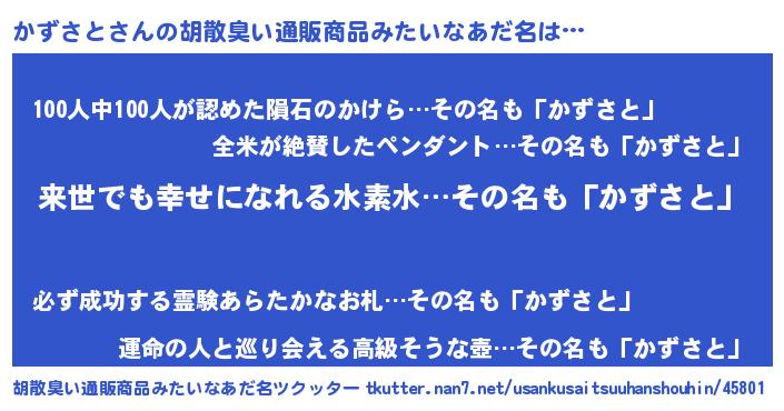 | 男性向けラノベタイトル風あだ名 | 『転生したらかずさとだった件』 |