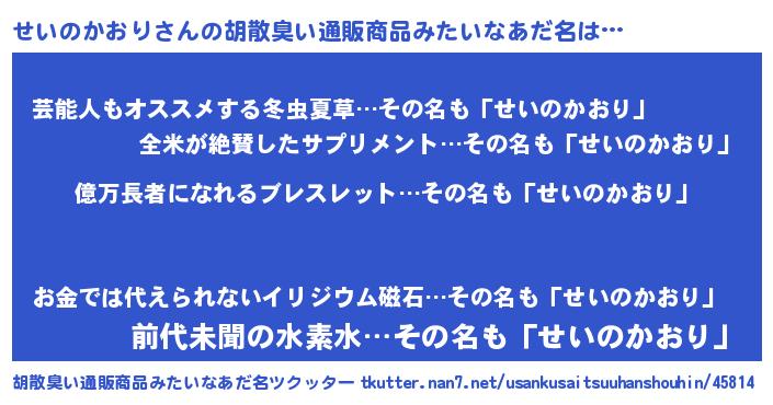 | ヒーロー風カッコイイあだ名 | 『スーパーセイノカオリ』『天弓騎士セイ』 |