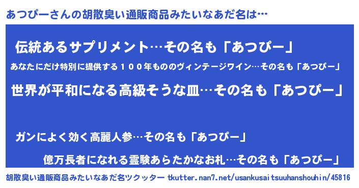 | 意味不明あだ名 | 『あつぴーフォーエバー』 |