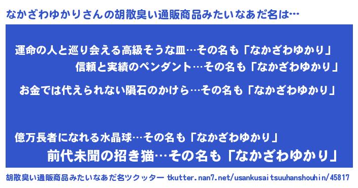 | ヘコむあだ名 | 『豆乳』『なかざわゆかり(遠い目)』 |