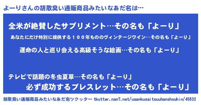 よーりさんの胡散臭い通販商品みたいなあだ名をツクッター!