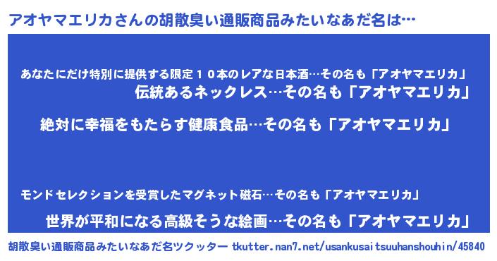 | ヘコむあだ名 | 『アオヤマエリカ(笑)』『酢こんぶ』 |