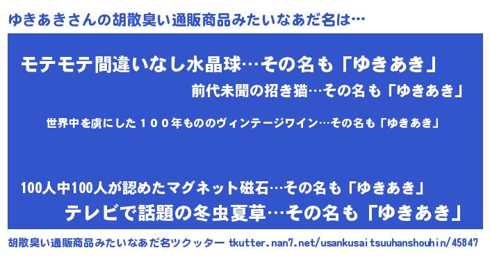 | ヘコむあだ名 | 『ゆきふぇ~』『ゆきあき(爆)』 |