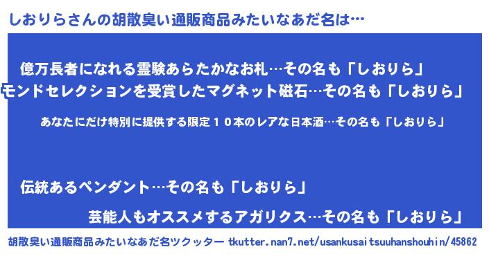 | 意味不明あだ名 | 『住所不定無職しおりら(43歳)』 |