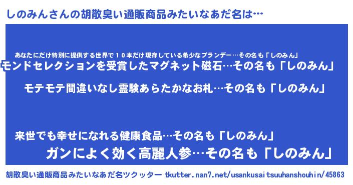 | 意味不明あだ名 | 『ペロリンしのみん』『自称しのみん』 |