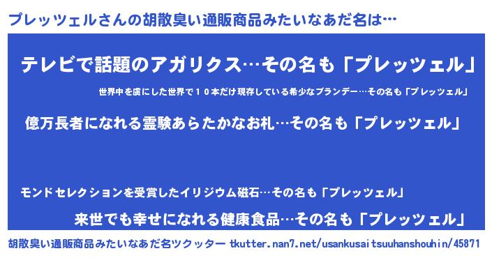 | 女子向けラノベタイトル風あだ名 | 『プレッツェルの玉の輿計画!』 |