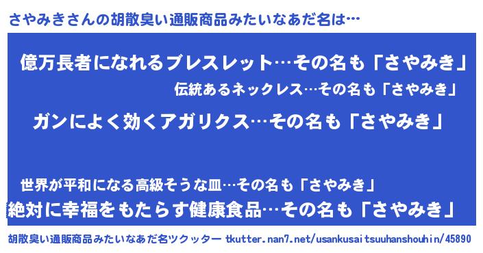 | ヘコむあだ名 | 『さやにゅー』『さやみき(笑)』 |