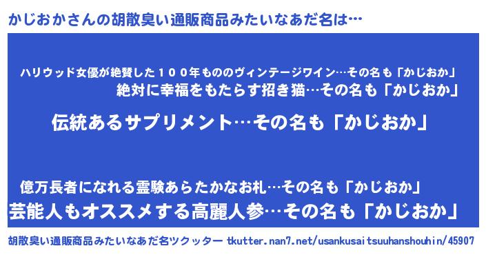 | 意味不明あだ名 | 『とにかく怪しいかじおか』 |
