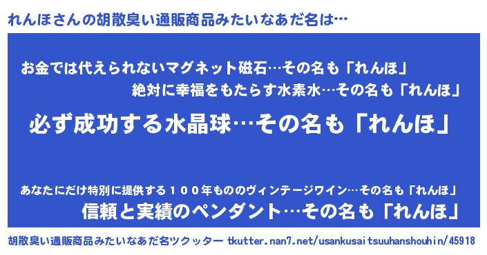 | 男性向けラノベタイトル風あだ名 | 『れんほの憂鬱』『はたらくれんほさま!』 |