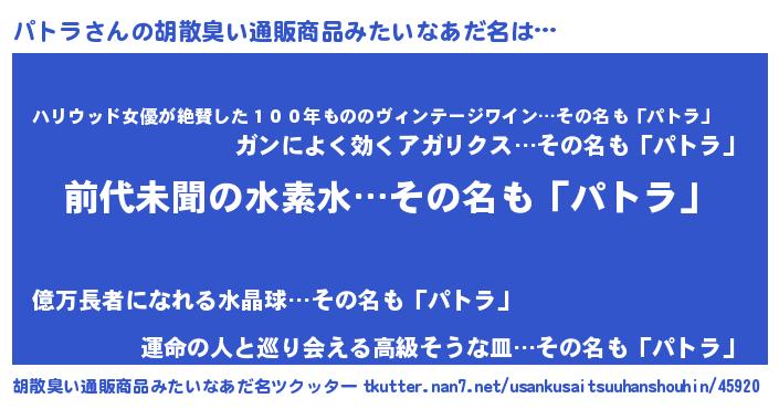 | 意味不明あだ名 | 『永久保存パトラ』『パトラフォーエバー』 |