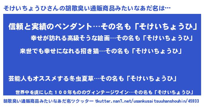 | 意味不明あだ名 | 『永久保存そけいちょうひ』 |