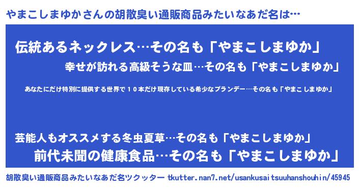 | 男性向けラノベタイトル風あだ名 | 『この素晴らしい世界にやまこしまゆかを!』 |