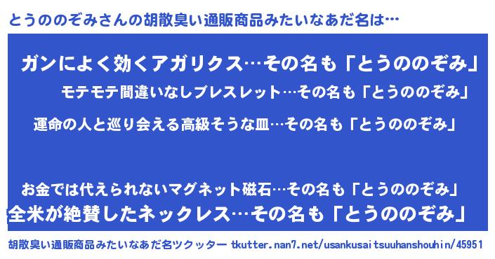 | 意味不明あだ名 | 『とうののぞみフォーエバー』 |
