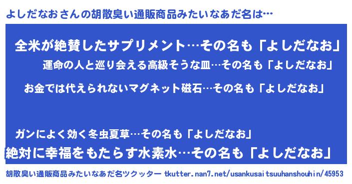 | 欧米人風あだ名 | 『アンジェラ・よしだなお』 |
