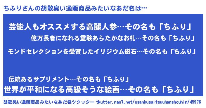 | ヒーロー風カッコイイあだ名 | 『天空の使者ちふり』『最強戦士チフリ』 |