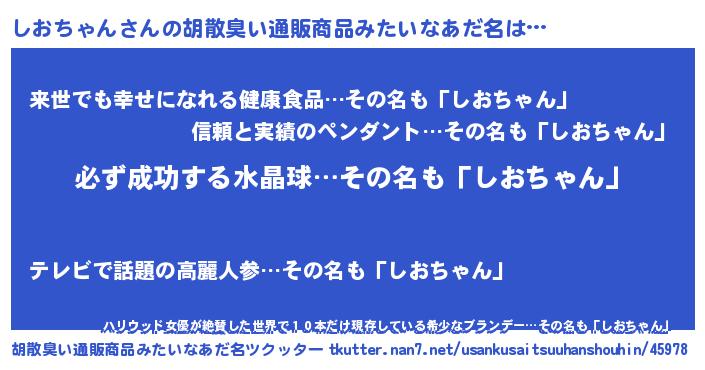 | ヘコむあだ名 | 『しおふぇ~』『しおちゃん(笑)』 |