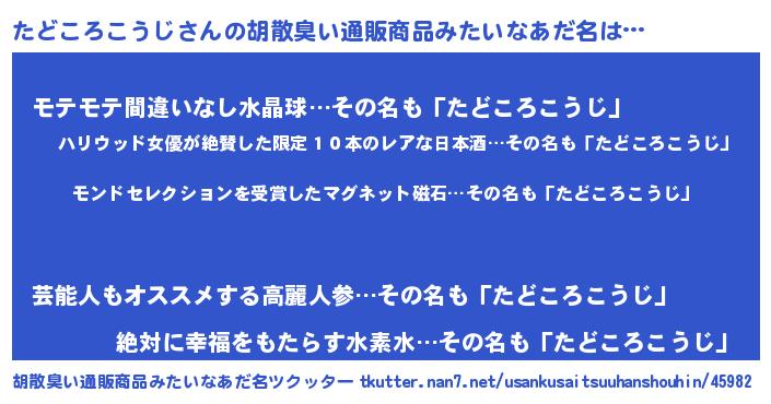 | ヘコむあだ名 | 『たどにー』『たどころこうじ(笑)』 |