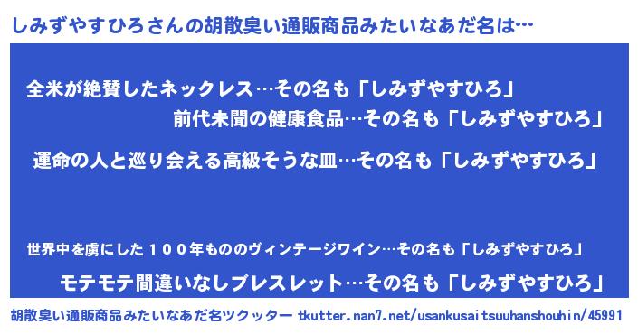 | ポケモン風あだ名 | 『シミズダネ』『ヒシミズヤスヒロ』 |