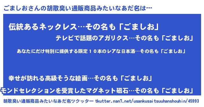 | 意味不明あだ名 | 『住所不定無職ごましお(59歳)』 |